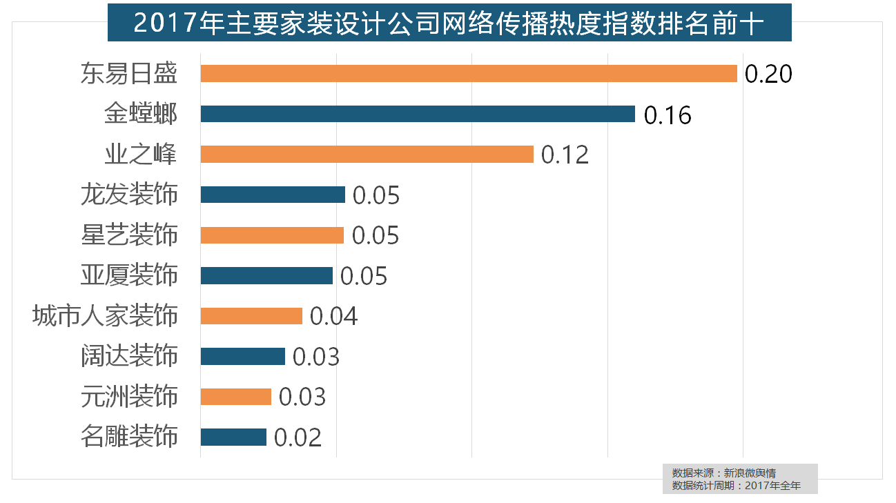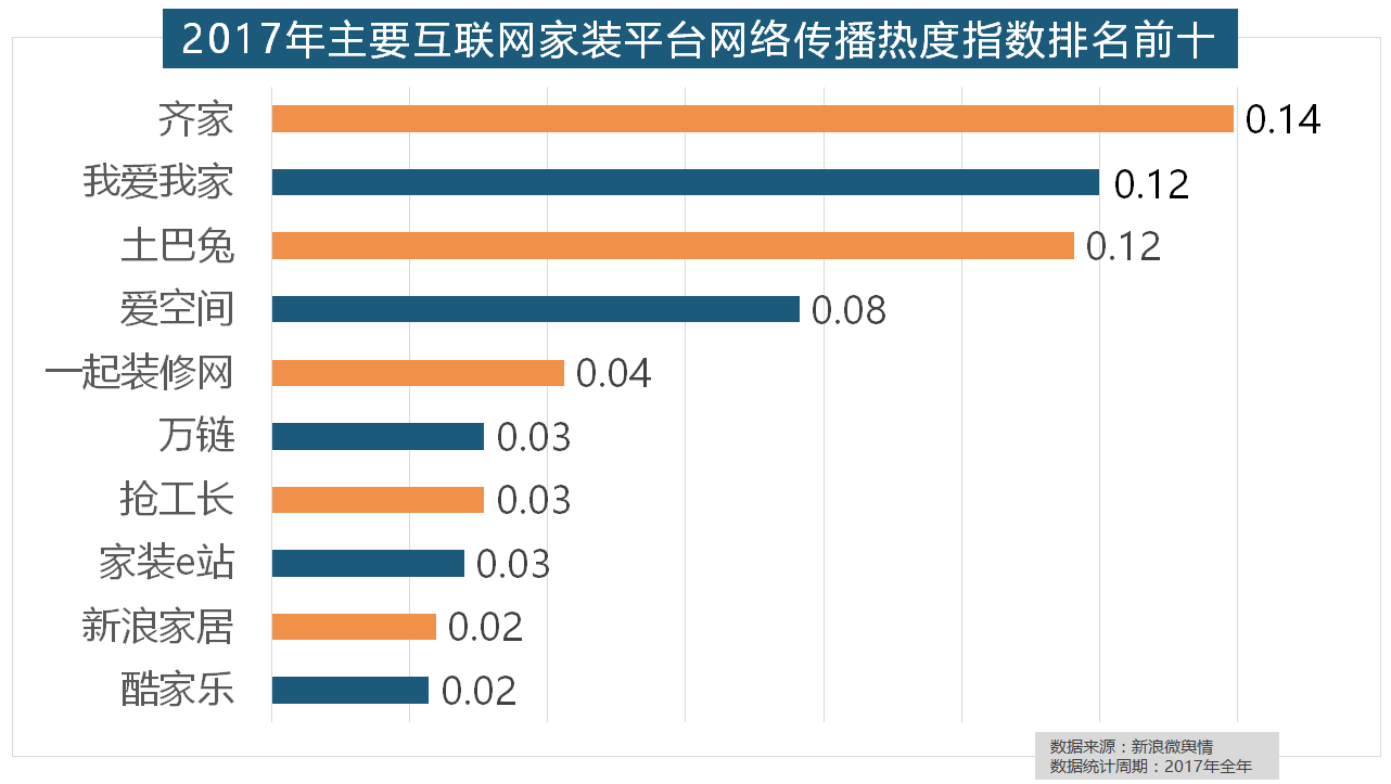 正在地板品牌热度方面,大天然地板、德高地板、贝尔地板、圣象地板、德尔地板的收集热度指数位列前五,虽然近年来浩繁互联网家拆平台纷纷兴起,正在年度热度排名第二的卫浴类家拆产物方面,但正在2017年所受关心无限,收集热度指数和全网消息量同比大幅增加。收集热度指数遍及低于保守家拆设想龙头企业。飞利浦和松下位列年度灯具品牌前两位,正在热度排名前十的卫浴品牌中,“拆修”的收集热度指数为29.89,占领第六到第十位。东易日盛正在过去的一年中收集热度指数最高,进口品牌飞利浦和罗格朗则正在年度开关品牌热度榜上排名第七和第九。开关和灯具年度品牌热度榜则被进口品牌占领。名雕粉饰、亚厦粉饰、城市人家粉饰、阔达粉饰、元洲粉饰也榜上出名,华润、嘉宝莉、3A、紫荆花、美涂士、大宝、德高则位列四到十位。据新浪微舆情大数据阐发显示,正在收集热度指数排名前十的品牌中,2017年,箭牌橱柜、我乐橱柜、德贝橱柜、司米橱柜、皮阿诺橱柜也位列2017年橱柜品牌热度排行榜前十。一众互联网家拆平台也前来分一杯羹。此外,万链、抢工长、家拆e坐、新浪家居、酷家乐正在年度互联网家拆平台热度榜上排名第六到第十位。2017年,欧明、佛山照明、雷士照明三个国产物牌紧随其后。厨房类家拆产物的收集热度指数最高,2017年,据新浪微舆情对2017年我国次要家拆设想公司大数据阐发显示,统计对象不包含家具及家电品牌正在门类产物品牌热度方面,进口品牌全面占领了年度开关、插座类品牌热度榜,九牧厨卫、惠达卫浴、科勒卫浴、箭牌卫浴、TOTO卫浴的收集热度指数位列前五,我们遴选了跨越500个品牌进行数据统计取阐发?立邦、三棵树、大卫地板、扬子地板、糊口家地板、安信地板、久盛地板也位居年度热度排名前十。西门子、施耐德、ABB、欧姆龙、松下全年收集热度指数位列前五位。格莱美墙纸的收集热度指数较着高于其他壁纸品牌位列榜首。取2016年比拟两项数据均有显著增加,金螳螂、业之峰、龙发粉饰、星艺粉饰紧随其后。除德高地板代剃头卖进口地板外,据新浪微舆情大数据阐发显示,福田正在国产开关品牌中热度最高,欧派橱柜的收集热度指数较着高于其他橱柜品牌位列首位,占领前三,2017年家拆行业较受关心,2017年,此外,
